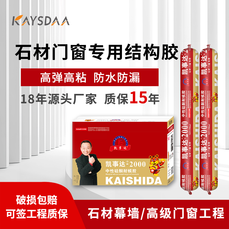 凱事達2000中性硅酮結(jié)構(gòu)膠可用于石材粘接、填縫,也可用于門窗密封玻璃粘接等